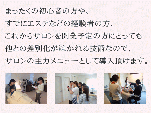 売れる技術、プロとして役立つ技術にこだわって学習していける本格的な小顔スクールとなっています。