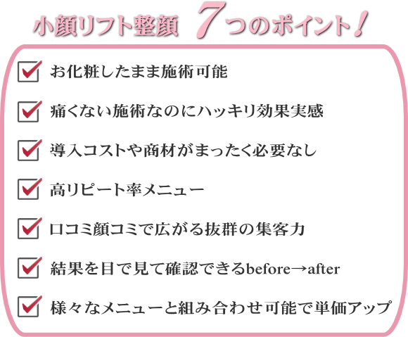 既に営業されている方は、小顔リフト整顔を目玉メニューとして告知し、お客さまをどんどん獲得していってください。